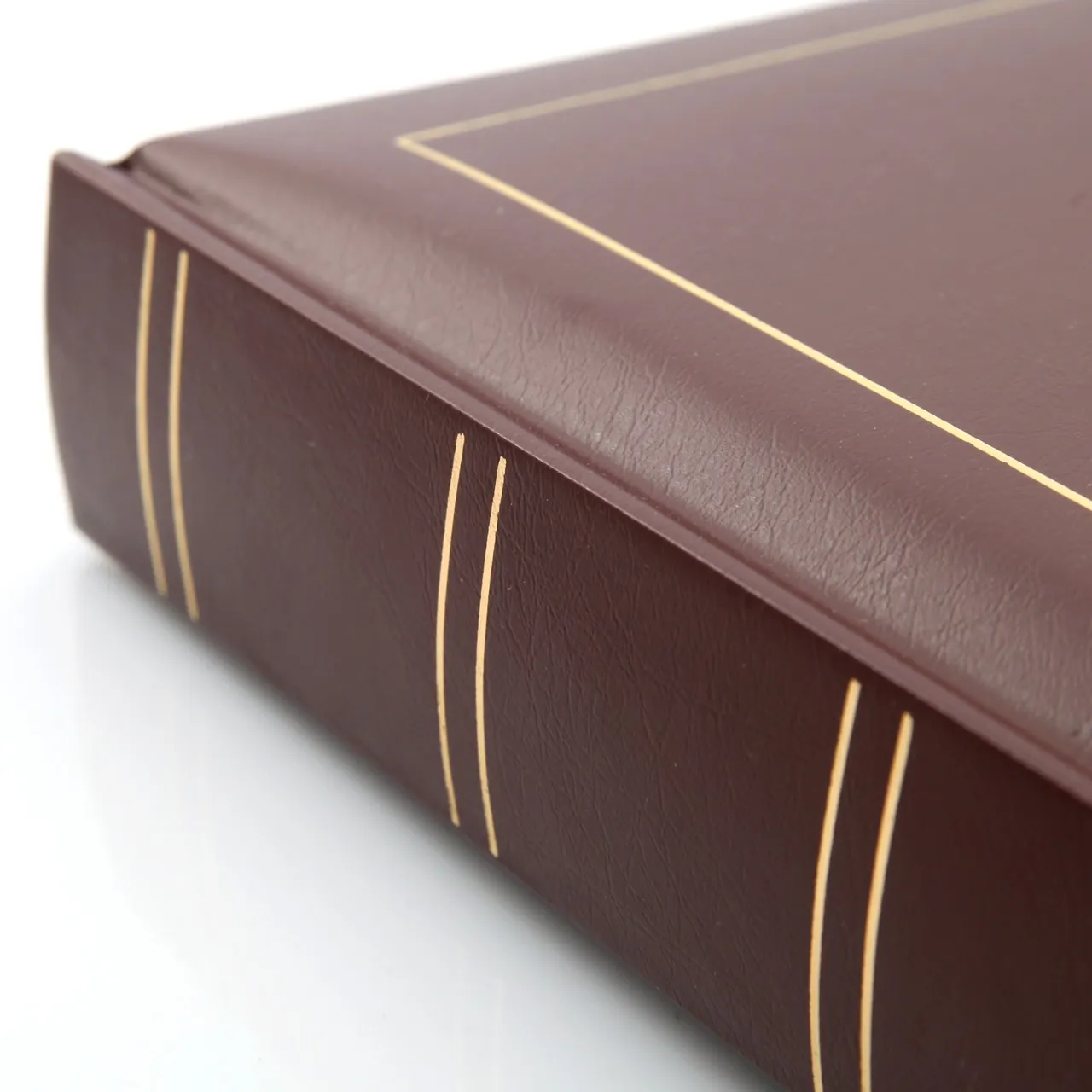 Ten tradycyjny album fotograficzny to połączenie elegancji i prostoty. Okładka wykonana ze skóry ekologicznej w klasycznym, brązowym kolorze została ujęta w delikatną, złotą ramkę, która nadaje całości subtelnego blasku. Grzbiet ozdobiono złotymi, poziomymi paskami, co podkreśla poważny i stylowy charakter albumu. To doskonały wybór zarówno na zdjęcia ślubne, jak i inne ważne wspomnienia 📖✨.