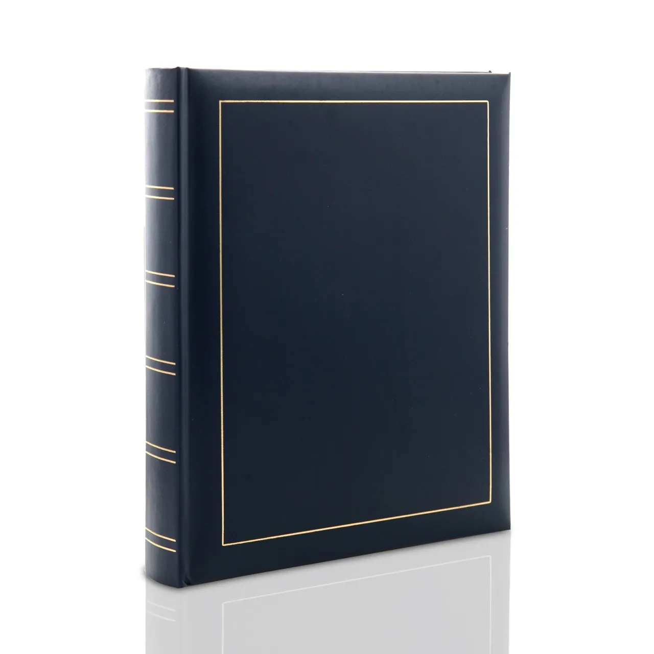Klasyczny i elegancki album fotograficzny, który pozwoli zachować najpiękniejsze wspomnienia przez lata. Okładka wykonana ze skóry ekologicznej w granatowym kolorze została ujęta w subtelną, złotą ramkę, dodając całości szyku i ponadczasowego charakteru. Grzbiet ozdobiony złotymi, poziomymi paskami podkreśla tradycyjny, elegancki styl, dzięki czemu album świetnie sprawdzi się jako pamiątka ślubna, rodzinna czy prezent 🎁.