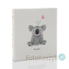 Karton jest gładki, śliski w dotyku, nadrukowano na nim uśmiechniętego misia koalę.