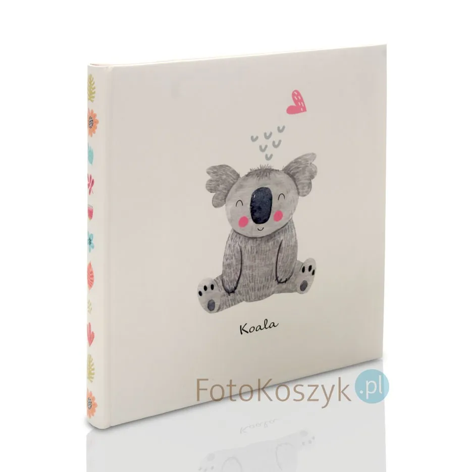 Okładka została wykonana z gładkiego, lekko śliskiego kartonu w ciepłym odcieniu beżu. Na przodzie znajduje się uroczy rysunek uśmiechniętego misia koali, który zaprasza do świata dziecięcych wspomnień. Grzbiet zdobią nadrukowane delikatne listki, a tył albumu – drugi koala, umieszczony w dolnej części.