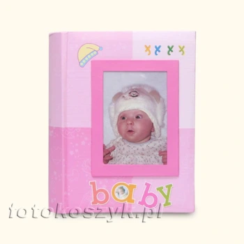 Główną ozdobą albumu będzie zdjęcie dziecka umieszczone w dużej, różowej ramce.