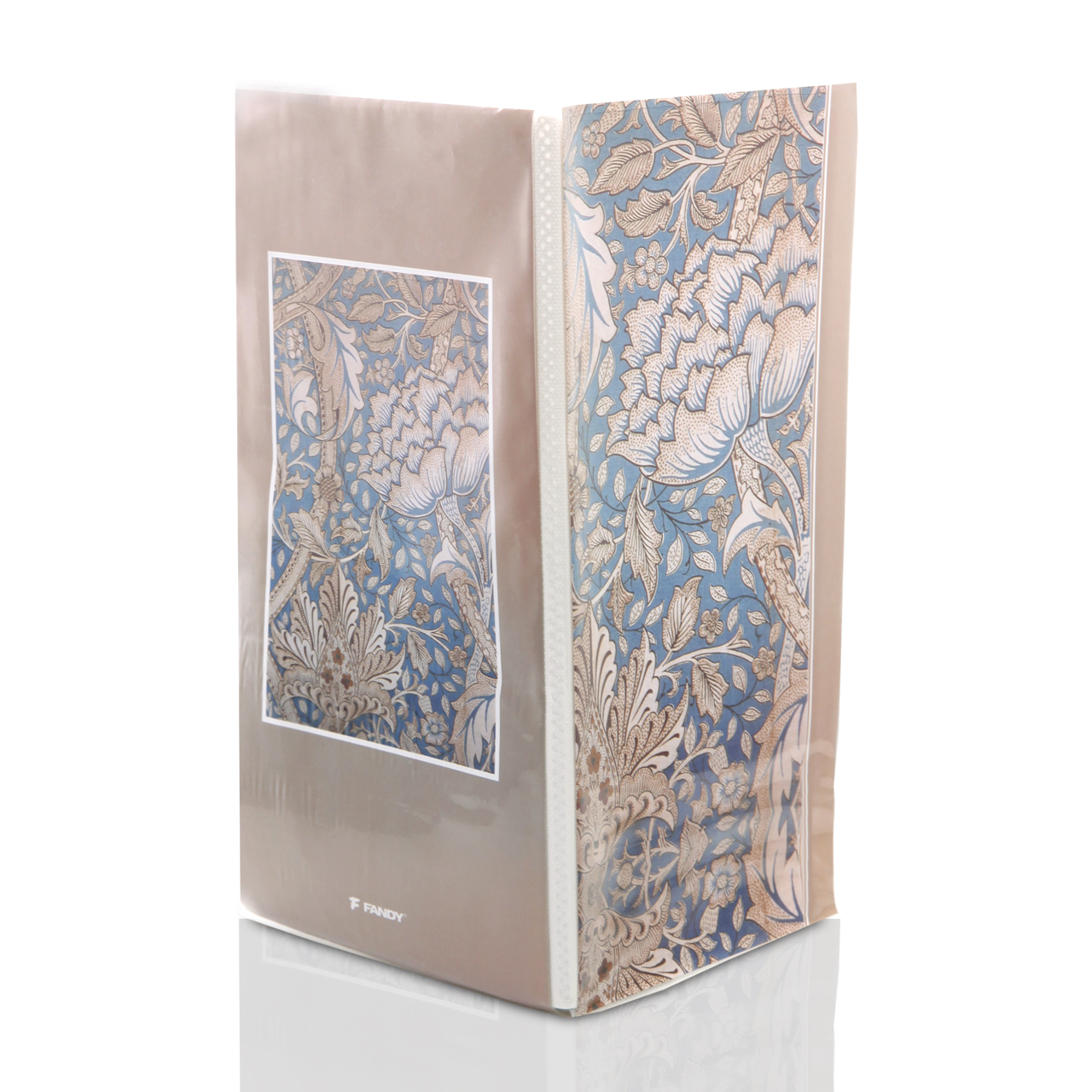 Okładka została wykonana z przezroczystego tworzywa i ozdobiona grafiką vintage na niebiesko-beżowym tle. Co ważne – okładkę można wymienić, wkładając w jej miejsce własną fotografię, dzięki czemu album zyskuje indywidualny styl. Tył albumu jest beżowy, z miniaturką zdjęcia z okładki – również z możliwością wymiany.
