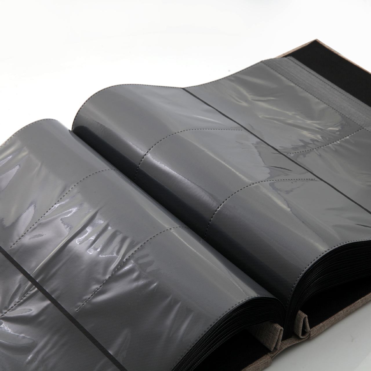 Wnętrze tworzą czarne karty wykonane z tworzywa sztucznego, mocowane na śruby, co umożliwia przekładanie i dowolne wpinanie stron. Na każdej stronie mieści się 5 zdjęć (2 pionowe + 3 poziome), co daje łącznie imponującą pojemność 500 fotografii. Podczas oglądania widocznych jest aż 10 zdjęć jednocześnie, co robi ogromne wrażenie. 📷