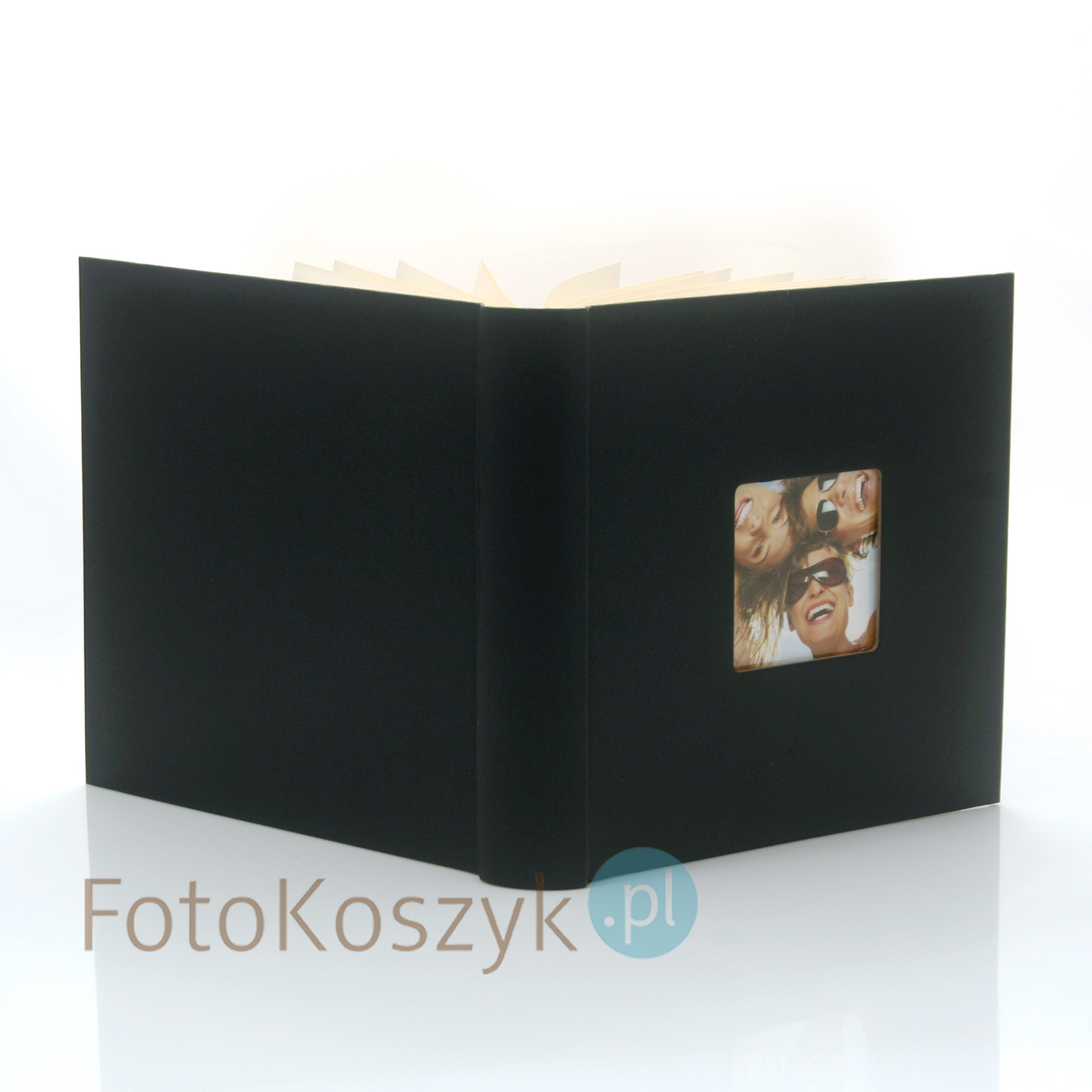 Okładka albumu wykonana została z eleganckiego papieru ozdobnego o strukturze przypominającej płótno. Matowa czerń łączy w sobie minimalizm, spokój i klasę. To kolor, który pasuje do każdego wnętrza i stylu – od nowoczesnych aranżacji po klasyczne salony. W centralnej części okładki znajduje się estetyczne okienko (10x10 cm), w którym możesz umieścić zdjęcie przewodnie – idealne na rozpoczęcie opowieści.