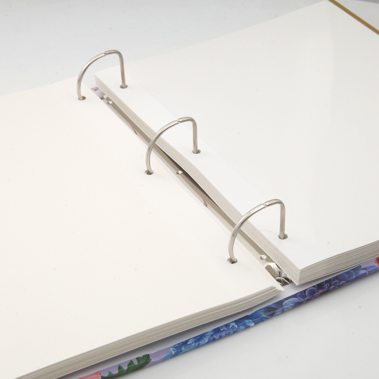 W środku znajdują się grube, kremowe karty umieszczone w segregatorze - jest to nietypowe, ale bardzo wygodne rozwiązanie.
