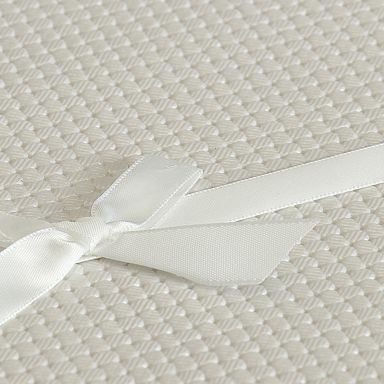 Przez środek okładki biegnie matowa, satynowa wstążka zawiązana z przodu albumu w uroczą kokardkę.