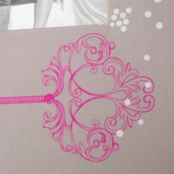 Album mieści do 200 zdjęć – po dwa na stronę – co pozwala utrwalić wszystkie najważniejsze chwile ze ślubu i wesela. Pierwsza karta jest dekoracyjna i umożliwia personalizację, a wewnętrzna część okładki ozdobiona została tematycznymi ilustracjami.