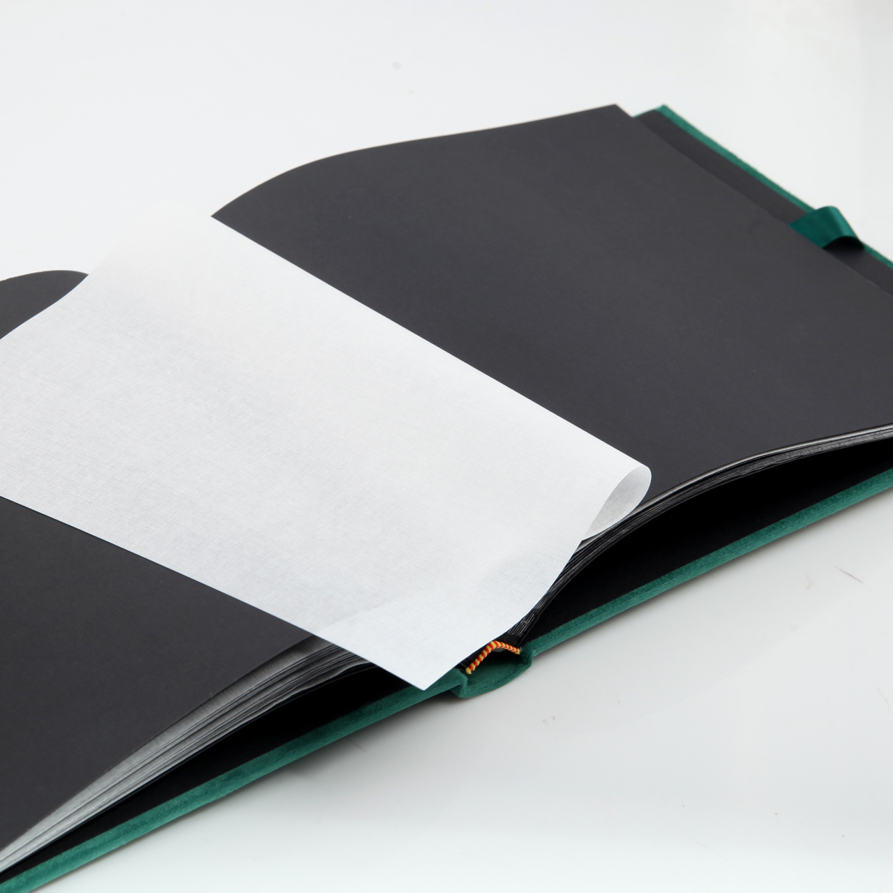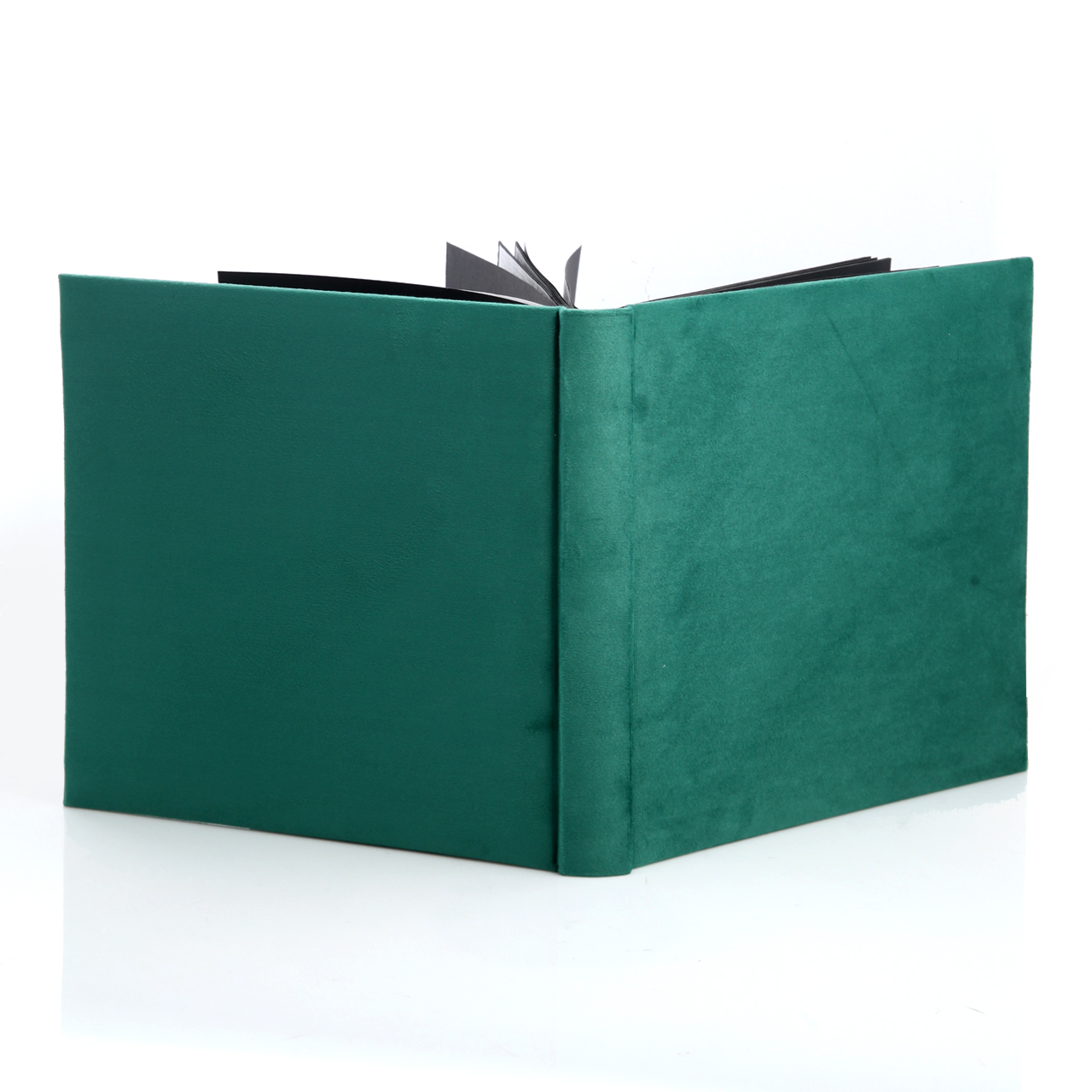 Album Velvet Emerald to tradycyjny, średniej wielkości album fotograficzny z 40 czarnymi stronami (20 kart). Doskonały do przechowywania wspomnień w eleganckiej i ponadczasowej oprawie – idealny jako album rodzinny, na cudowne wspomnienia.