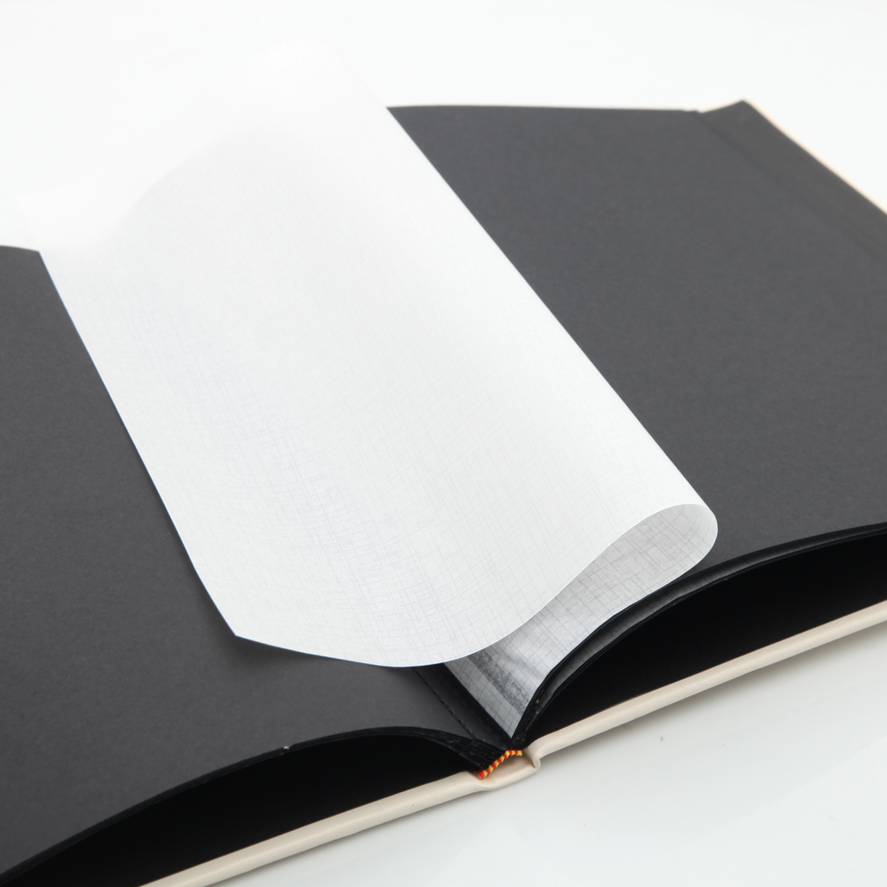 Wewnątrz albumu znajdują się bezkwasowe karty w kolorze czarnym, oddzielone pergaminem, który chroni fotografie przed zniszczeniem. Album mieści: