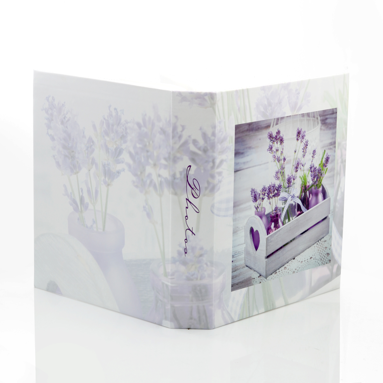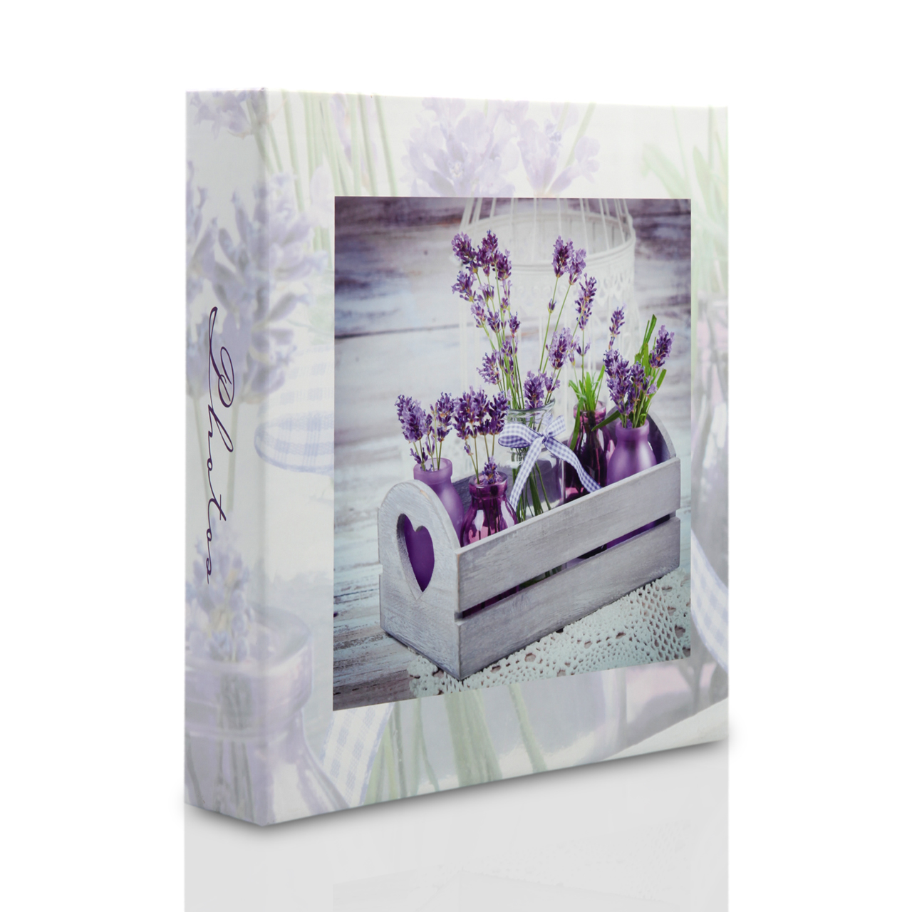 🌸 Kwiatowa elegancja – matowa, laminowana okładka zachwyca lawendową grafiką. Tło pięknie komponuje się z całością, jest matowe i również posiada lawendowe zdobienia, a grzbiet z napisem „Photos” dopełnia całość.
