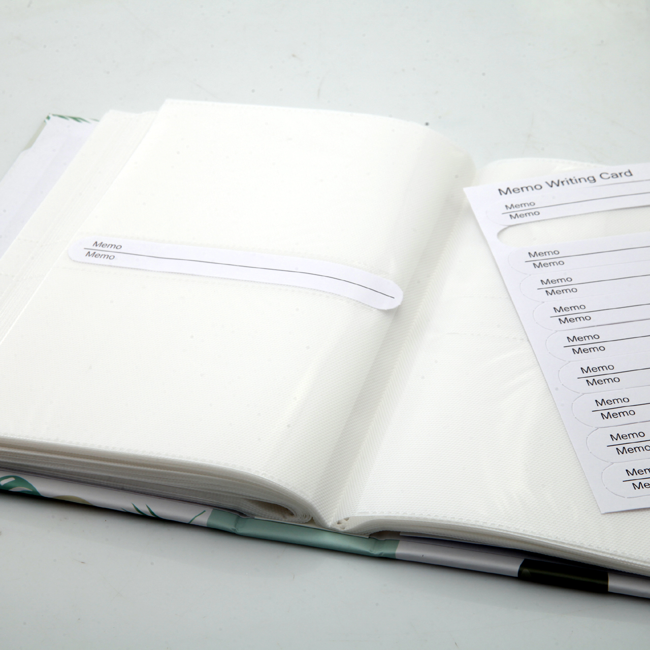 W środku znajduje się miejsce na 200 zdjęć w formacie 10×15 cm. Karty wykonane są z tworzywa PVC z przezroczystymi kieszonkami, do których fotografie wsuwane są od wewnątrz. Na każdej stronie mieszczą się dwa zdjęcia – jedno u góry, drugie na dole – co pozwala w przejrzysty sposób uporządkować całą kolekcję. Między zdjęcia można wsunąć kartkę z opisem, kartki dołączone są do albumu.