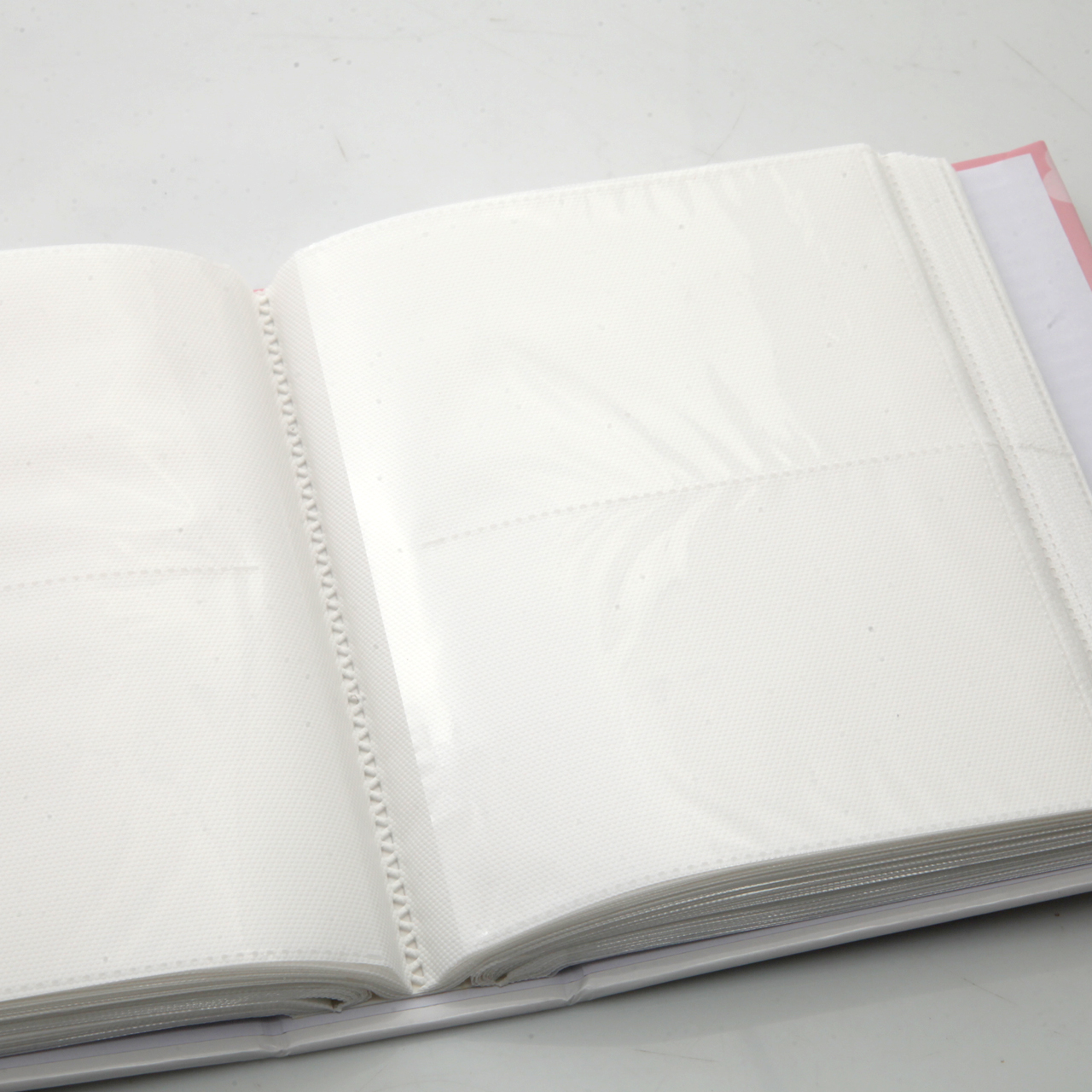Wewnątrz znajdują się karty z tworzywa PVC wyposażone w przezroczyste kieszonki, do których zdjęcia wsuwane są od wewnętrznej strony. Fotografie są w nich dobrze chronione i estetycznie wyeksponowane. Na każdej stronie mieszczą się dwa zdjęcia w formacie 10x15 cm. Klejona budowa albumu zapewnia wygodę w użytkowaniu i funkcjonalność na lata.