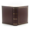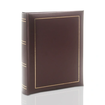 Klasyczny i elegancki album fotograficzny, który doskonale nadaje się do przechowywania wybranych wspomnień. Okładka wykonana ze skóry ekologicznej w ponadczasowym, brązowym kolorze została ujęta w delikatną, złotą ramkę, nadając całości stylowego charakteru. Grzbiet zdobią złote, poziome paski, które podkreślają tradycyjny i poważny wygląd albumu.