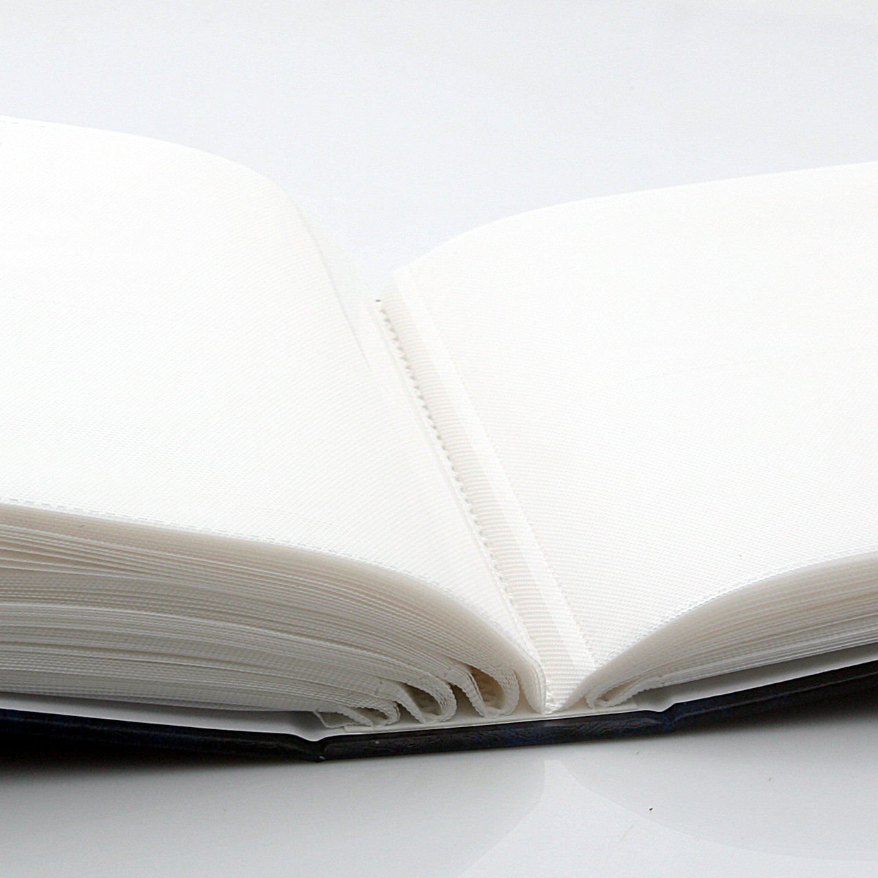 Wewnątrz znajdują się karty z kieszonkami wykonanymi z tworzywa PVC. Każda strona mieści dwa zdjęcia 10x15 cm, wsuwane wygodnie od zewnętrznej krawędzi. Solidna, klejona budowa sprawia, że album jest trwały i praktyczny w użytkowaniu.