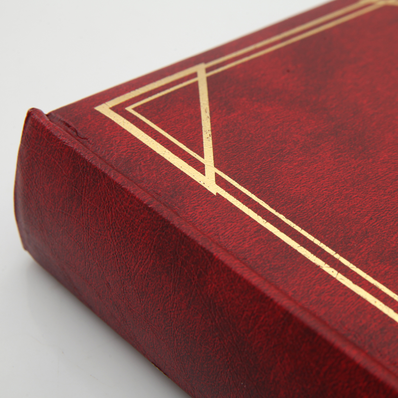 Okładka: bordowa, skóra ekologiczna, z podwójną złotą ramką