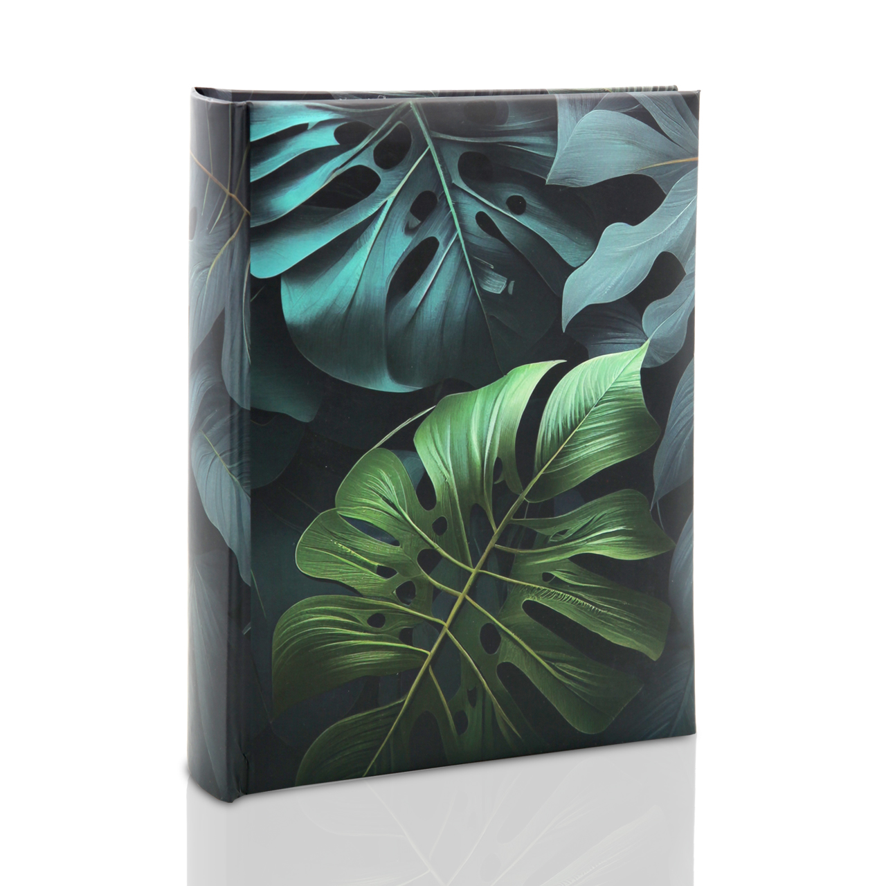 Ten album kieszeniowy to nie tylko praktyczne miejsce na zdjęcia, ale również elegancki dodatek. Doskonale sprawdzi się jako prezent, szczególnie dla miłośników roślinnych wzorów i modnych, ciemnych aranżacji.