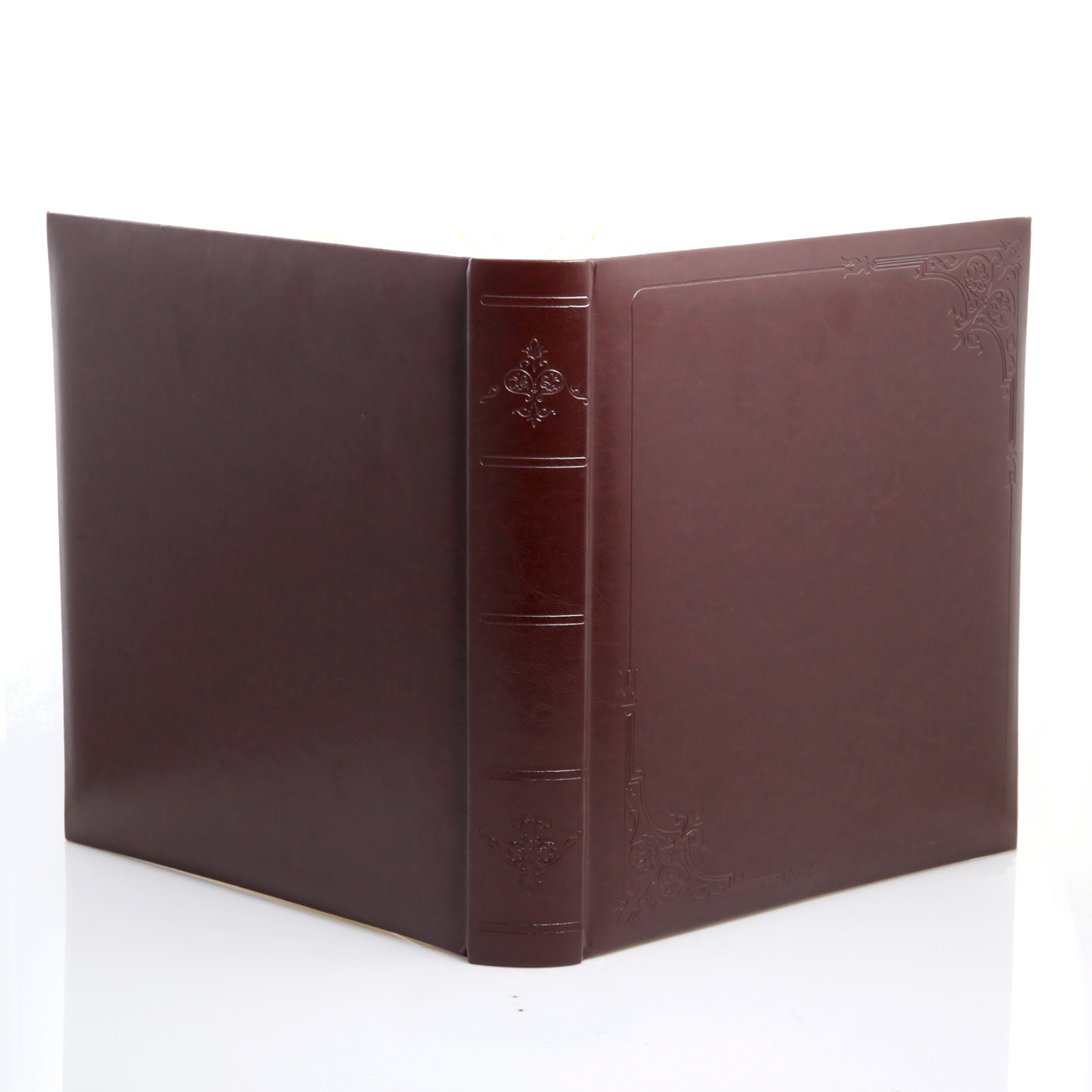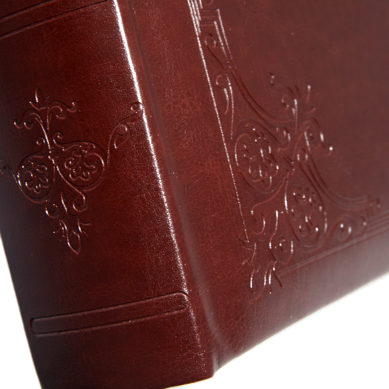 ❤️ Ekskluzywna okładka – wykonana z wysokiej jakości ekoskóry w głębokim, ciemnobrązowym kolorze. Powierzchnia jest półmatowa i gładka w dotyku, co nadaje albumowi szlachetnego charakteru. W rogach album ma piękne tłoczenia, które dodają elegancji. Każdy detal został dopracowany, by album prezentował się luksusowo i ponadczasowo. Album na grzbiecie również ma zdobienia.