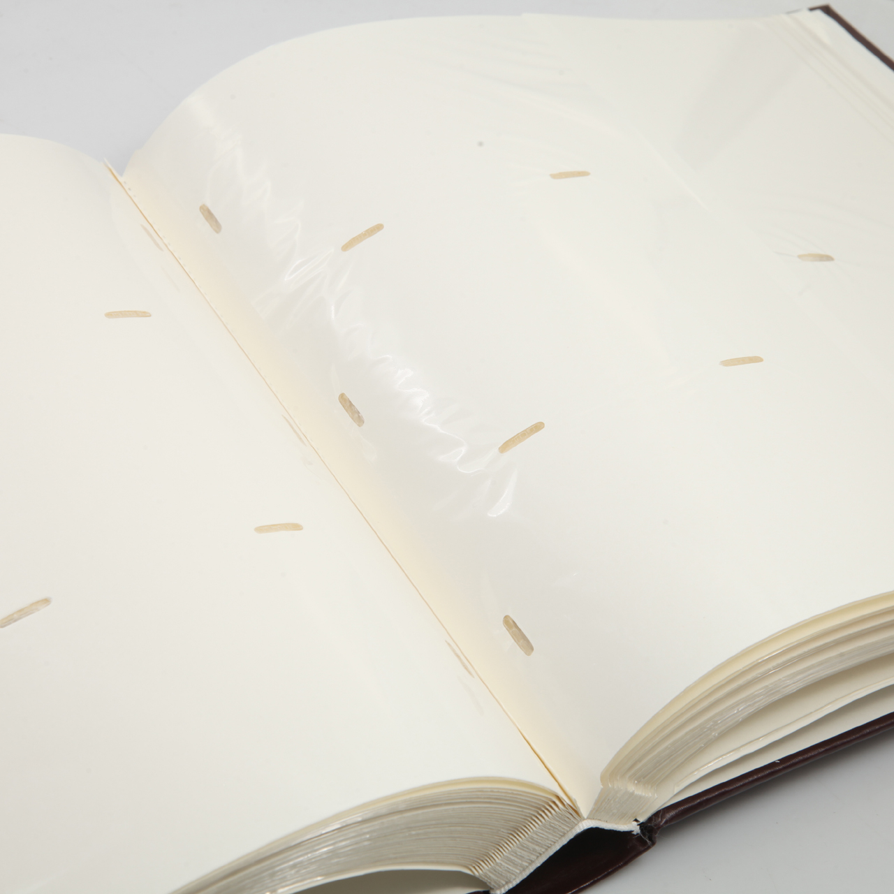 📸 Przemyślany układ zdjęć – wewnątrz znajdują się jasne, papierowe karty z przezroczystymi kieszonkami z PVC, które pomieszczą 500 zdjęć formatu 10x15 cm. Na jednej stronie można umieścić 5 fotografii – 2 w pionie i 3 w poziomie – co pozwala wygodnie prezentować kolekcję wspomnień.