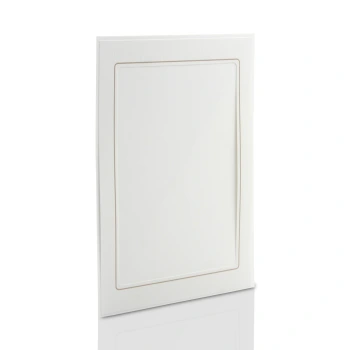 Ramka jest biała, wykonana jest z ozdobnego, intorligatorskiego kartonu, który ma fakturę płótna oraz delikatną, złotą ramką.