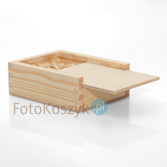 Drewniane pudełko ma dwuczęściową budowę z ruchomą, wysuwaną pokrywką. To rozwiązanie, które zapewnia łatwy dostęp do pendrive’a, a jednocześnie chroni jego zawartość przed kurzem i uszkodzeniami.