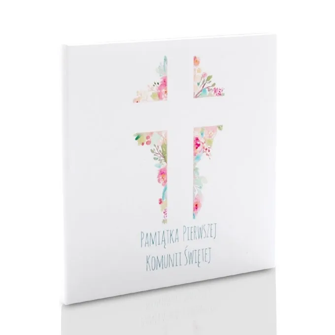 Na etui nadrukowany jest krzyż na kolorowych kwiatach.