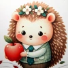 Nadrukowano na niej jeżyka w ubranku trzymającego jabłko.