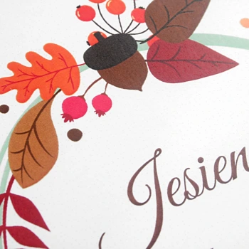 Nadrukowano na niej ozdobny wzór jesiennych liści.