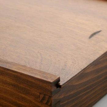 Drewno sosnowe to surowiec odnawialny, trwały i przyjazny środowisku. Dzięki lakierowaniu i bejcowaniu pudełko jest odporne na zabrudzenia i wilgoć, co pozwala zachować jego estetykę przez długie lata.