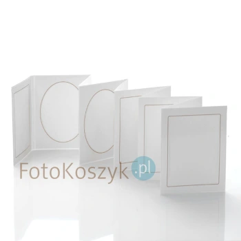 Wewnątrz są kartonowe ramki na zdjęcia. Ramki są prostokątne i owalne.
