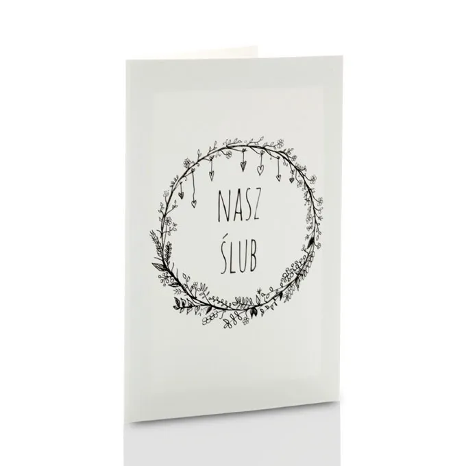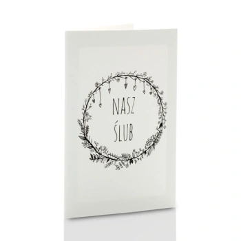 Okładka jest biała, ma ozdobny nadruk oraz napis: Nasz Ślub.