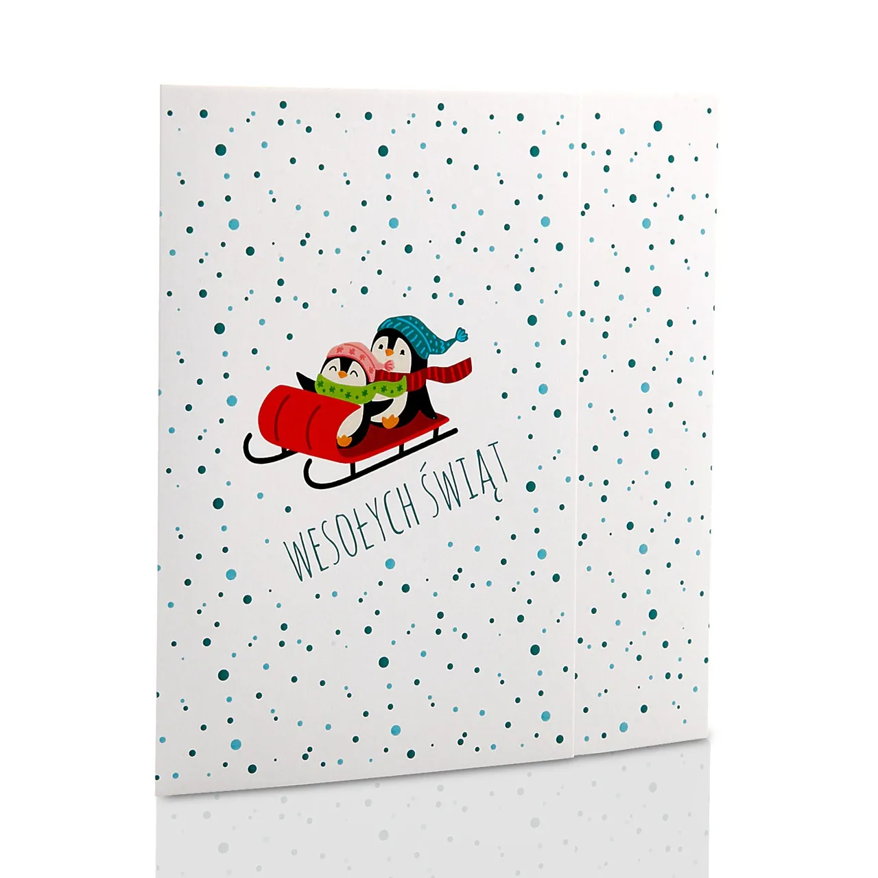 Okładka jest biała, z nadrukowanymi pingwinkami i napisem: Wesołych Świąt.