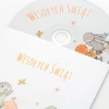 Etui ma nadrukowane wielkanocne zajączki oraz napis: Wesołych Świąt.