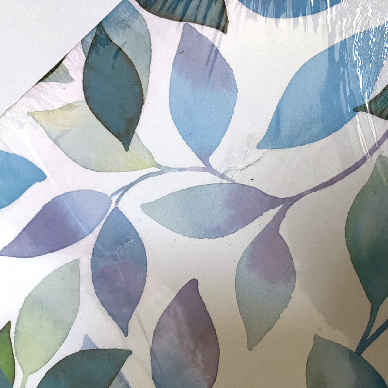 Kolor: nadruk z niebieskimi akwarelowymi liśćmi, grzbiet niebieski