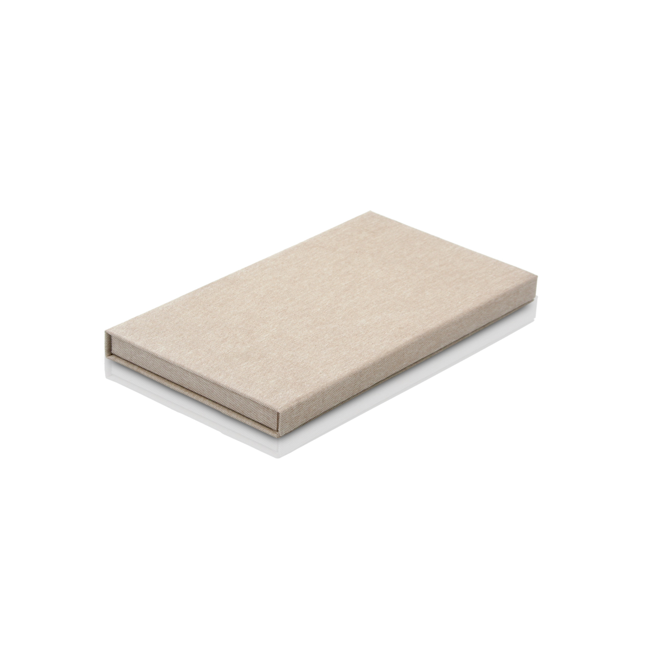 Pudełko na zdjęcia zrobione jest z grubej i sztywnej tektury pokrytej grubym materiałem.