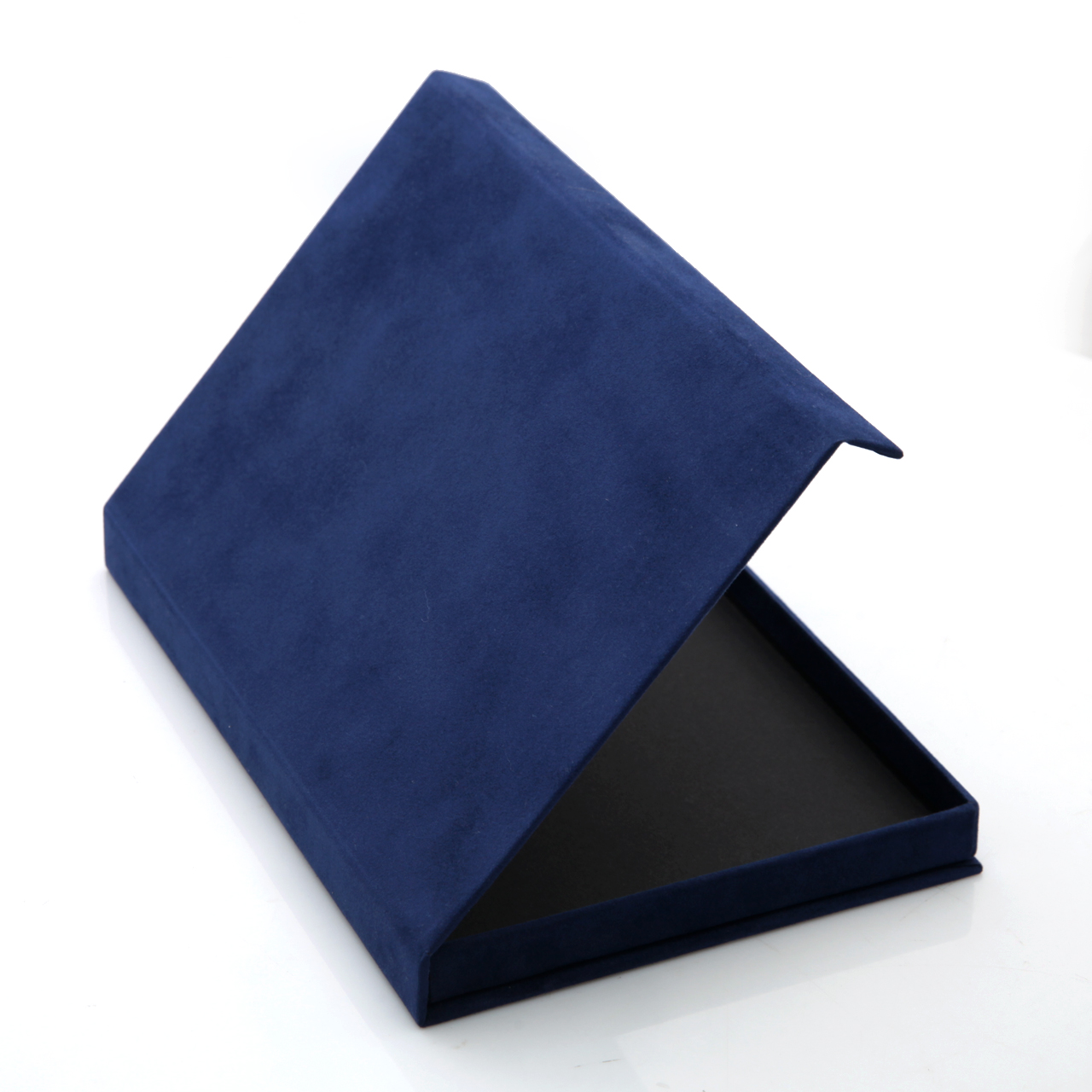 Pudełko na zdjęcia wykonane jest z grubej i sztywnej tektury pokrytej welurem.