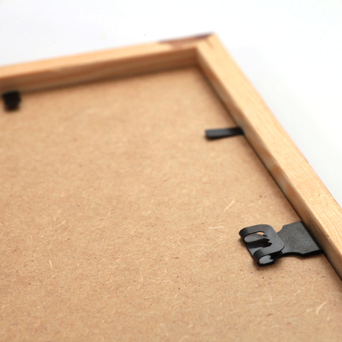 Ramka jest drewniana, ma prosty profil, bez zagłębień czy rzeźbień.