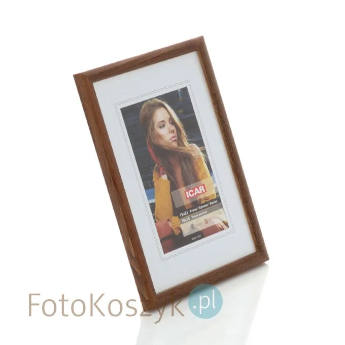 Ramka wykonana jest z drewna, ma ładny profil, brązowy kolor o żółtym odcieniu.