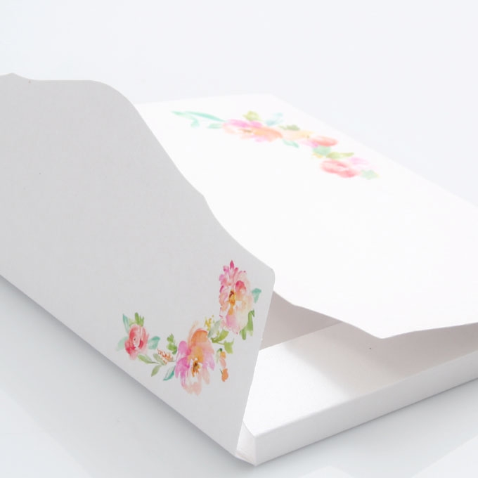 Teczka wykonana jest z grubego (300g/m) papieru introligatorskiego o perłowym połysku z ozdobnym nadrukiem.