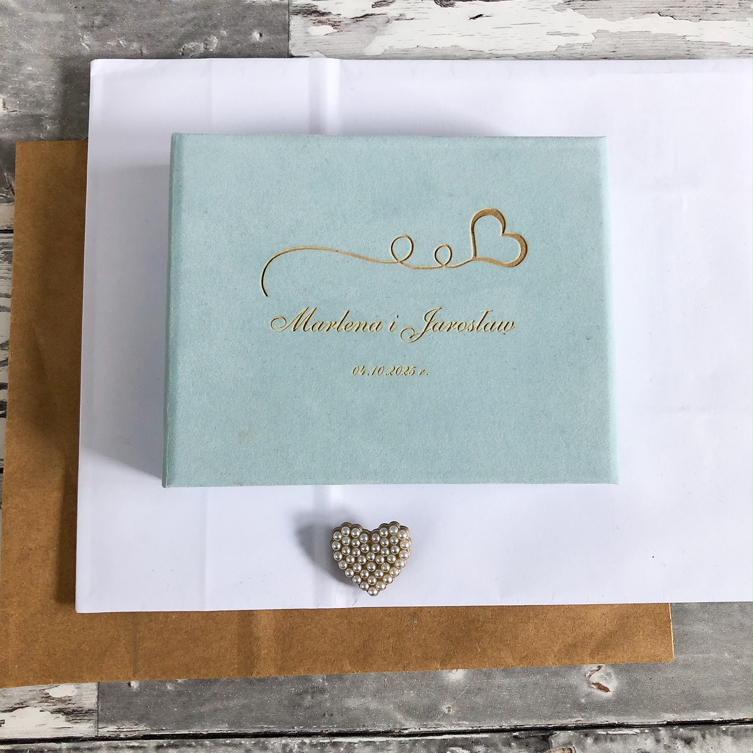 To eleganckie, welurowe pudełko w kolorze błękitu zachwyca subtelnością i stylem – idealne na prezent, dla fotografa lub jako elegancka oprawa Twoich wspomnień.
