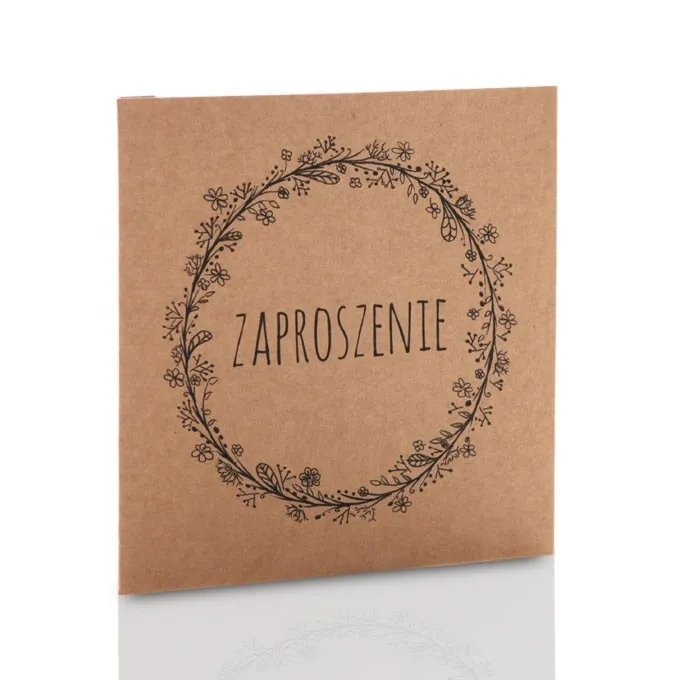Dwuczęściowe zaproszenie wykonane jest w całości z grubej tektury typu Kraft.